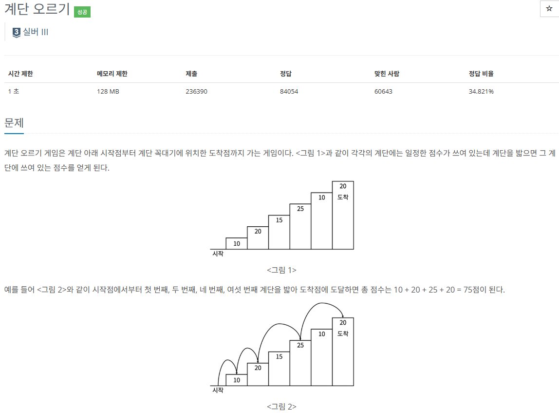 계단을 오를 때 합을 계속 기억하고 있어야 하기 때문에 다이내믹 프로그래밍으로 풀어야 한다