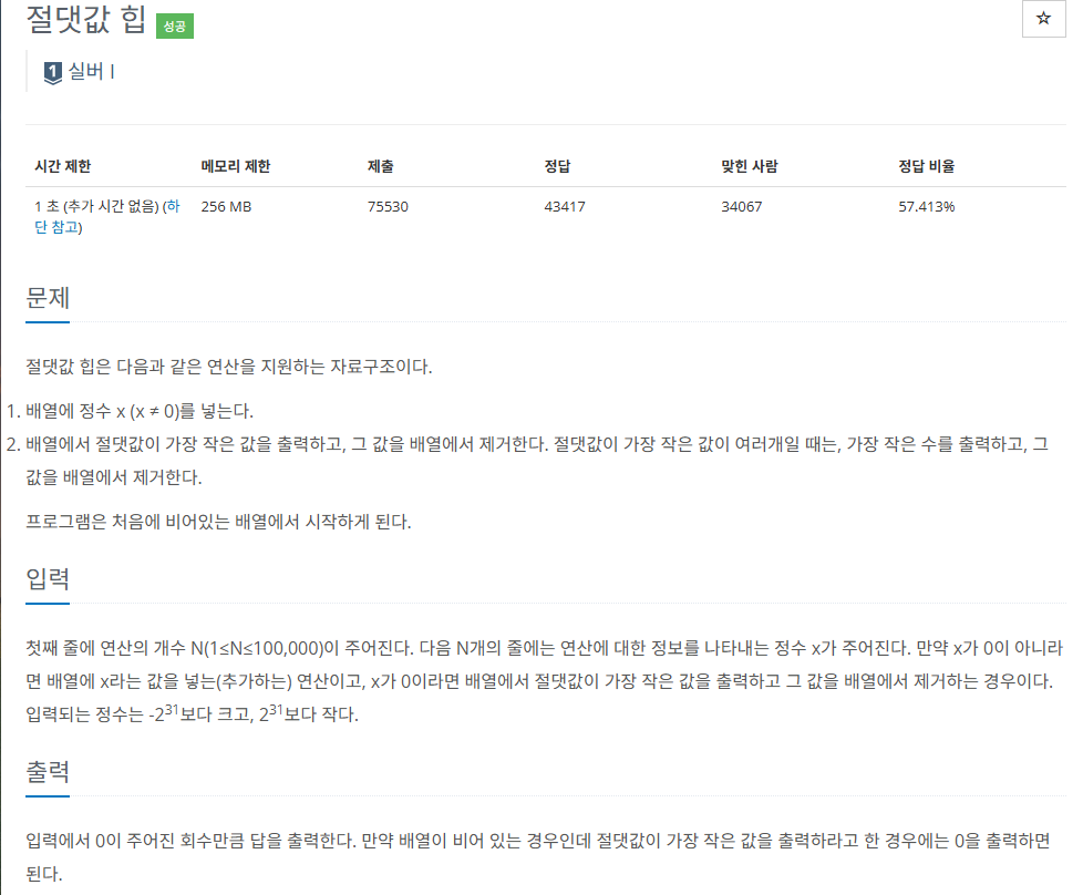 // 우선순위 큐를 선언할 때 정렬기준을 절댓값으로 비교한다고 해준다