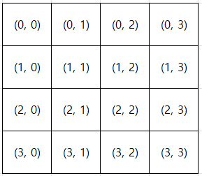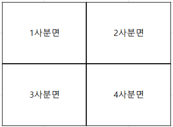 사각형을 절반으로 나누어 사분면을 만든다고 하면 아래 그림처럼 될 것이다 (2 x 2 사각형 4개)
