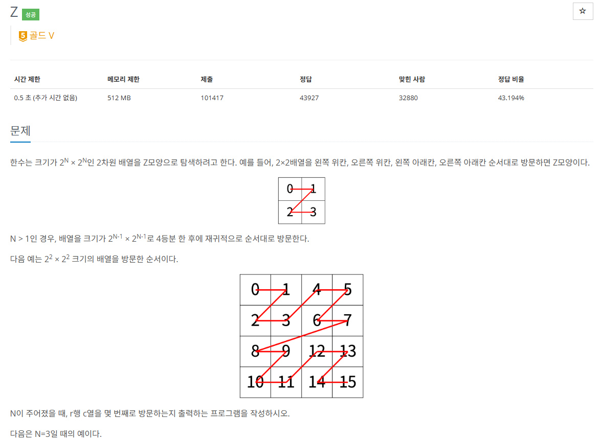만약 2사분면이라면 재귀 호출에 `(r, c - half)`를 넘겨줘야 한다