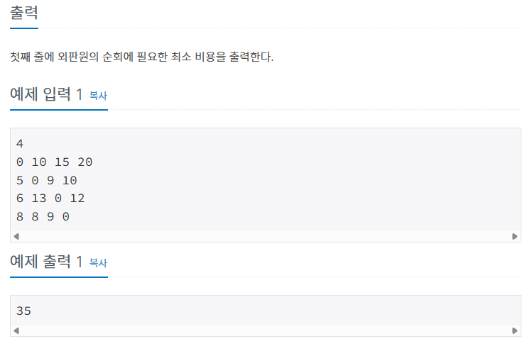 3. 모든 도시를 방문했다면 마지막 도시에서 출발점으로 돌아오는 비용을 더한다