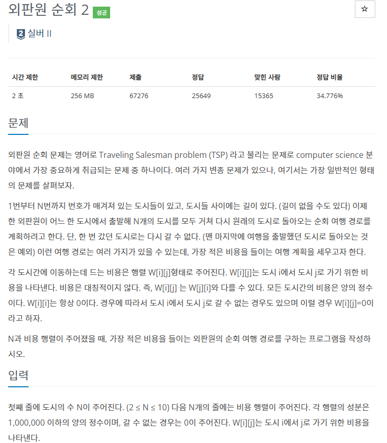 recur(i, i, 0, 0); // 0번 도시부터 재귀 호출