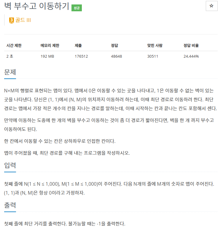 하지만 벽을 부수고 이동할 수 있기 때문에 일반적인 BFS로는 풀 수 없다